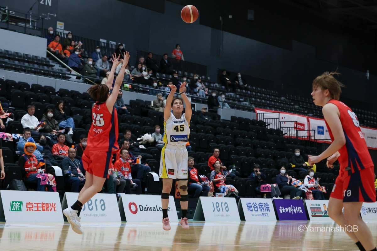 それでもダラーメ マレム ドイがフリースローで初得点を挙げると、渡邊愛加が3ポイントを沈め 10−8と逆転し、流れを呼び込む。前日苦戦した外角の決定力が、この日は序盤からチームに勢いをもたらした。