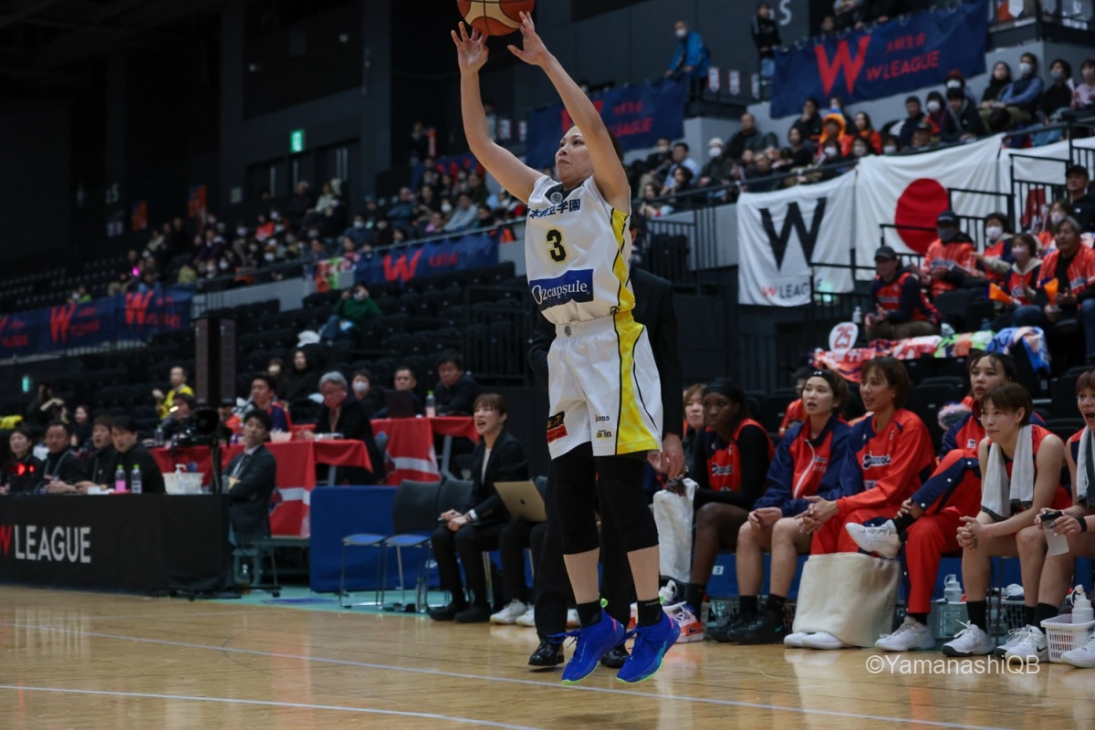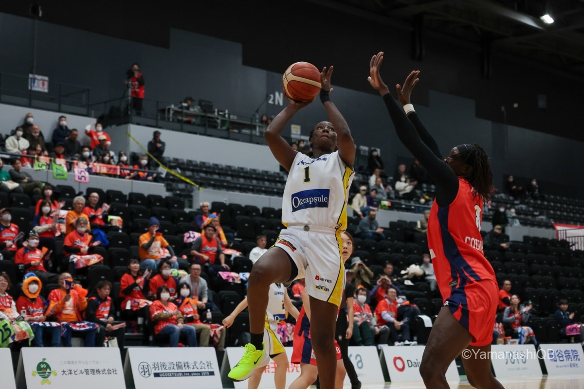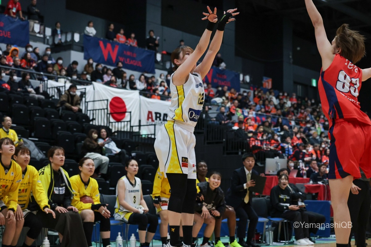 それでもダラーメ マレム ドイがフリースローで初得点を挙げると、渡邊愛加が3ポイントを沈め 10−8と逆転し、流れを呼び込む。前日苦戦した外角の決定力が、この日は序盤からチームに勢いをもたらした。