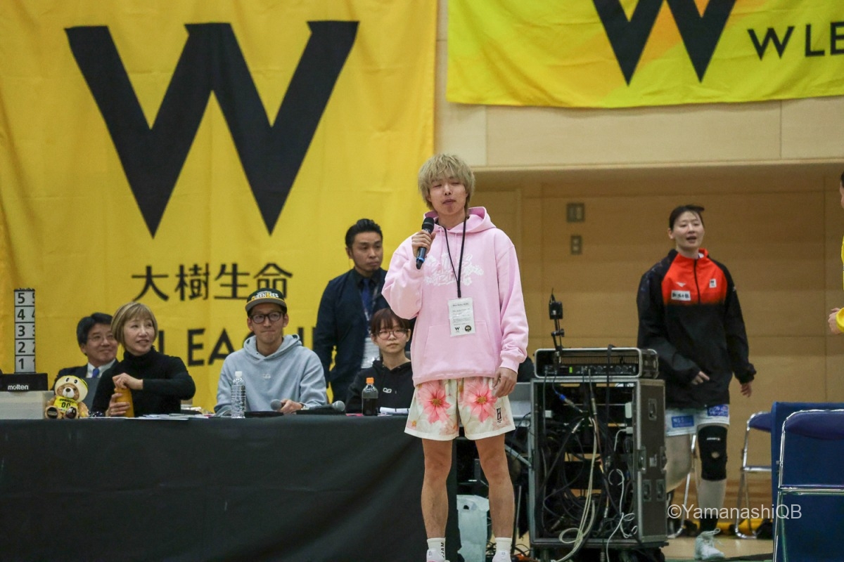 この冬、最強の寒波に覆われた日本列島。韮崎市の最低気温はマイナス7.4℃、最高気温も5.5℃にとどまった。外気温は、まるで冷凍庫の中にいるかのような1日だったが、試合会場の東京エレクトロン韮崎アリーナには立ち見を含め、1,042人が入場。両チームを後押しする大きな声援が会場を包んだ。
