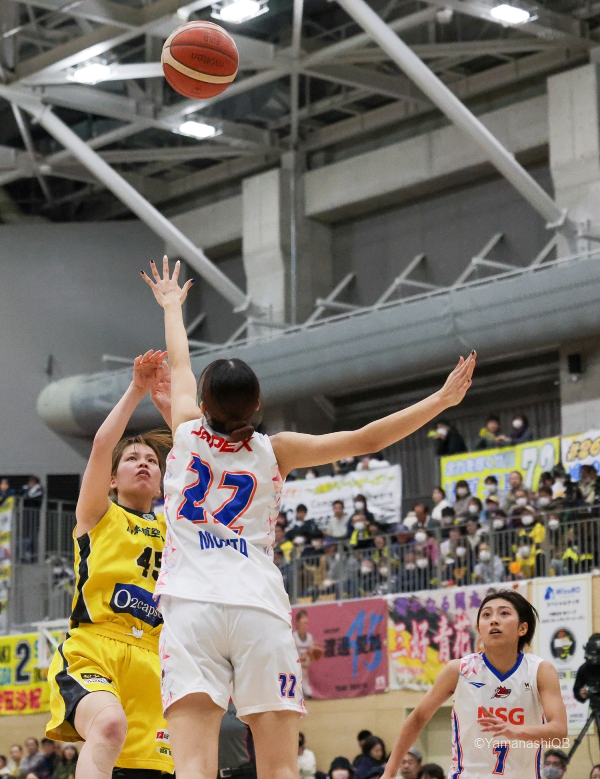 その後も、クィーンビーズは守りの強度を緩めることなく、全員がコートに立って新潟のゴールに迫る。