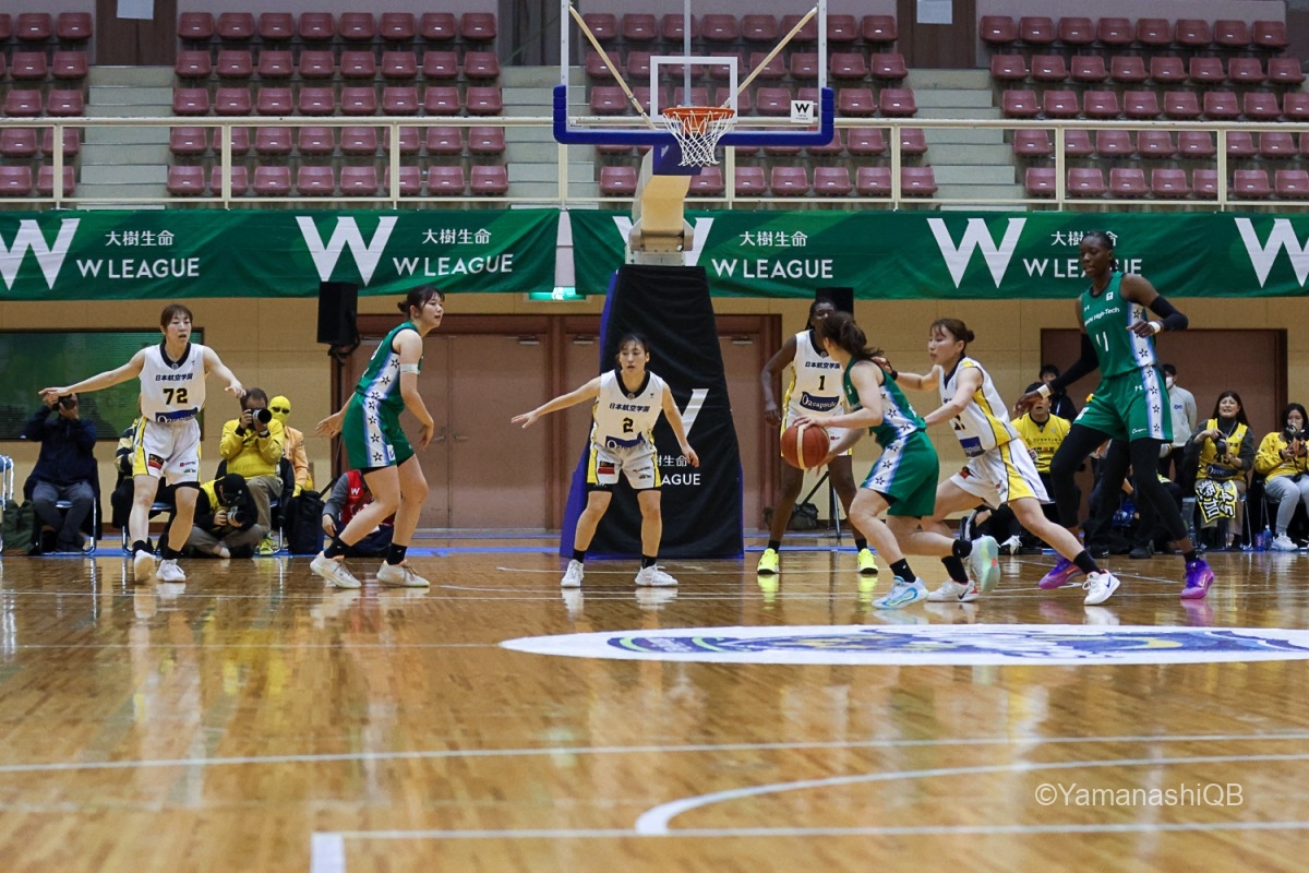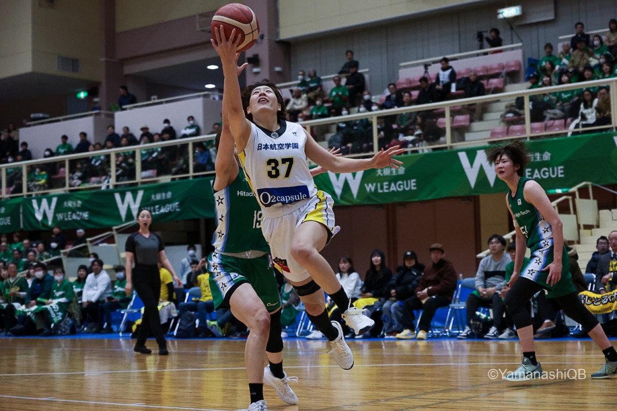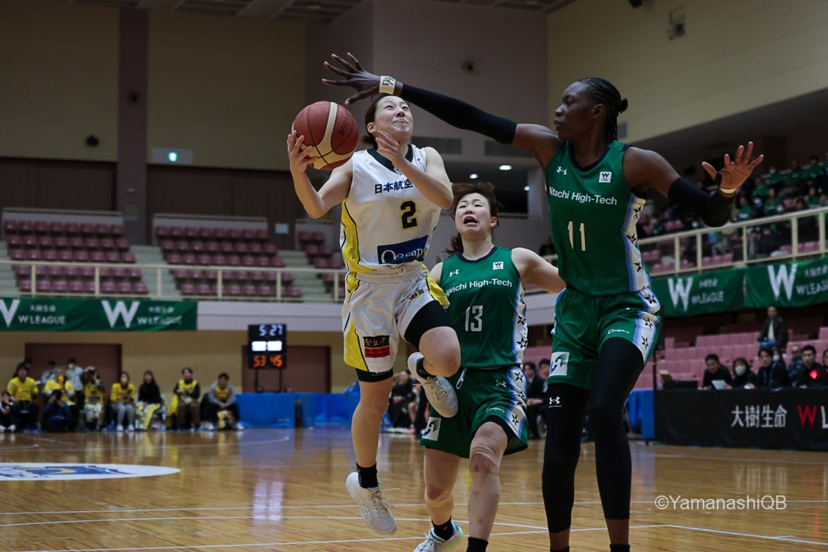 しかし、ここから流れが変わり始める。日立ハイテクはアミナタを軸にインサイドで反撃。アミナタの連続得点で32―34。残り3分42秒に同点とされると、樋口鈴乃の3Pで逆転。さらに池松美波も3Pを沈め、40―44で最終クォーターへ。