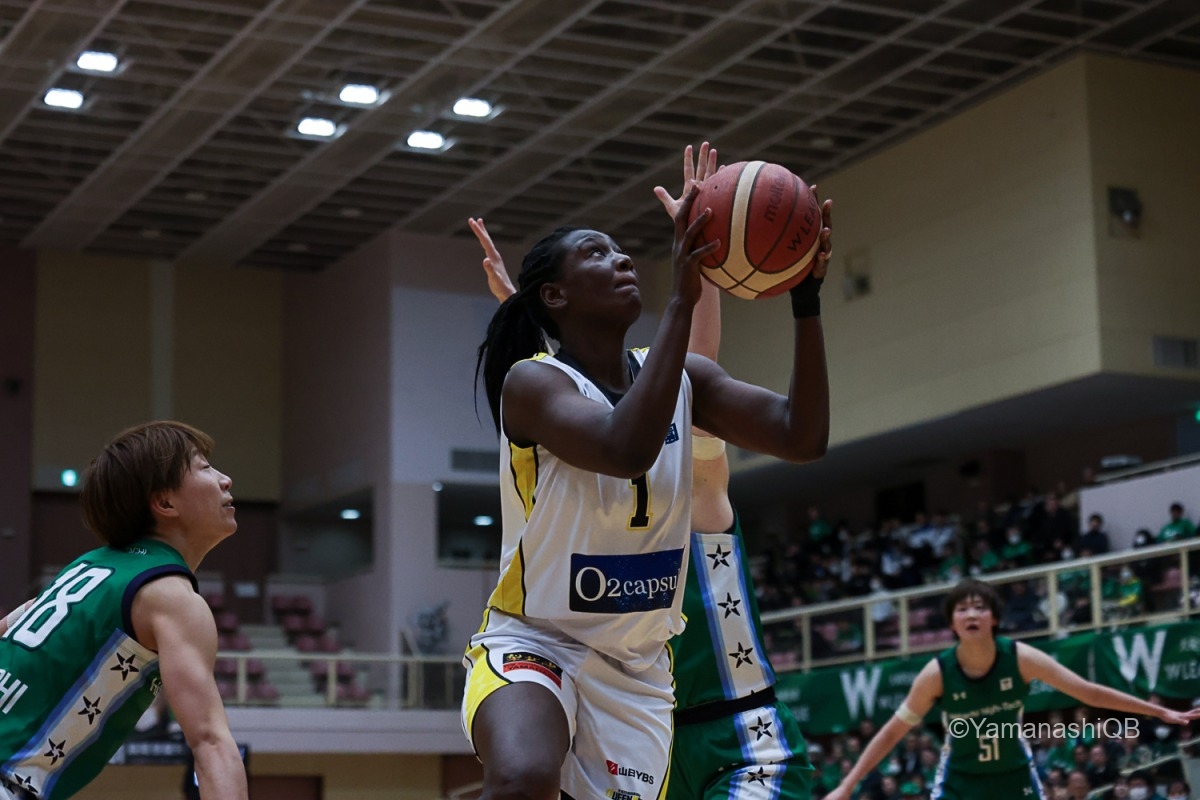 だが、ここで再び立ちはだかったのがアミナタである。十分警戒し、その網にかからないよう、もう一本、二本とパスを回し続ける「やり続ける冷静さ」を、優勝争いのがっぷちに追い詰められた中で失ったか。決定機を、この試合6本を記録したアミナタのブロックで阻まれ、残り1分26秒にはアミナタ自らゴール下を沈められ58―52。
