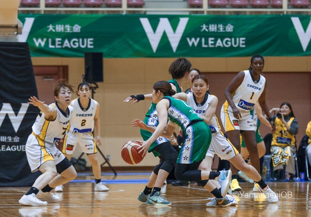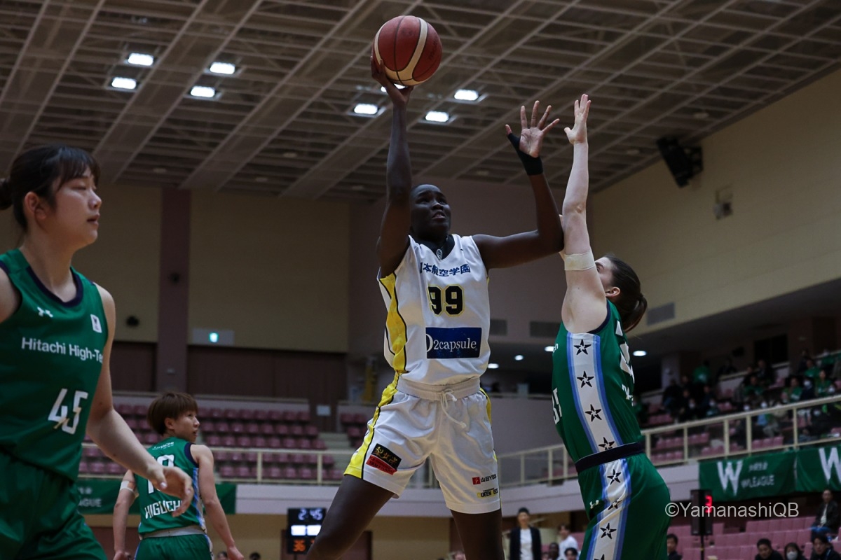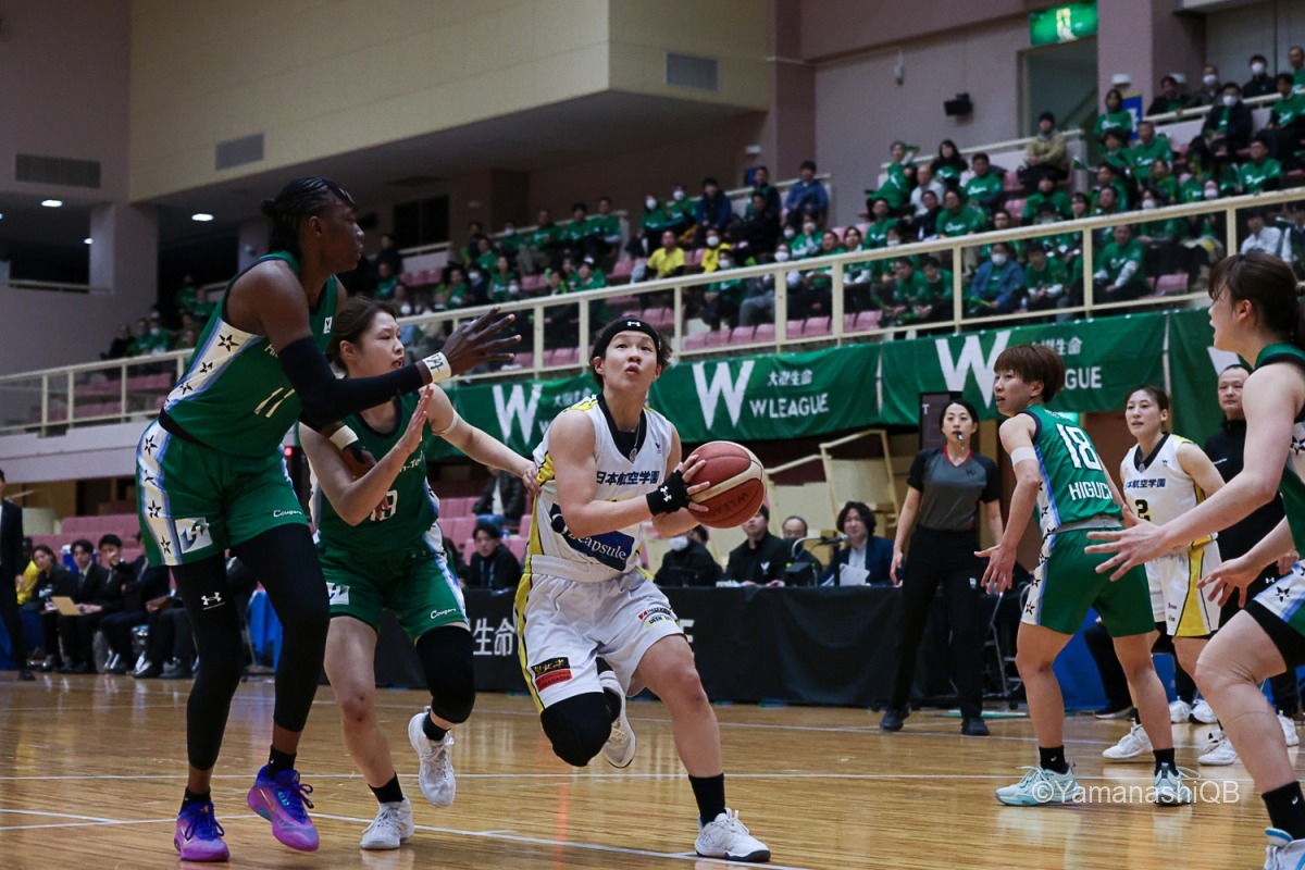 しかし、ここから流れが変わり始める。日立ハイテクはアミナタを軸にインサイドで反撃。アミナタの連続得点で32―34。残り3分42秒に同点とされると、樋口鈴乃の3Pで逆転。さらに池松美波も3Pを沈め、40―44で最終クォーターへ。