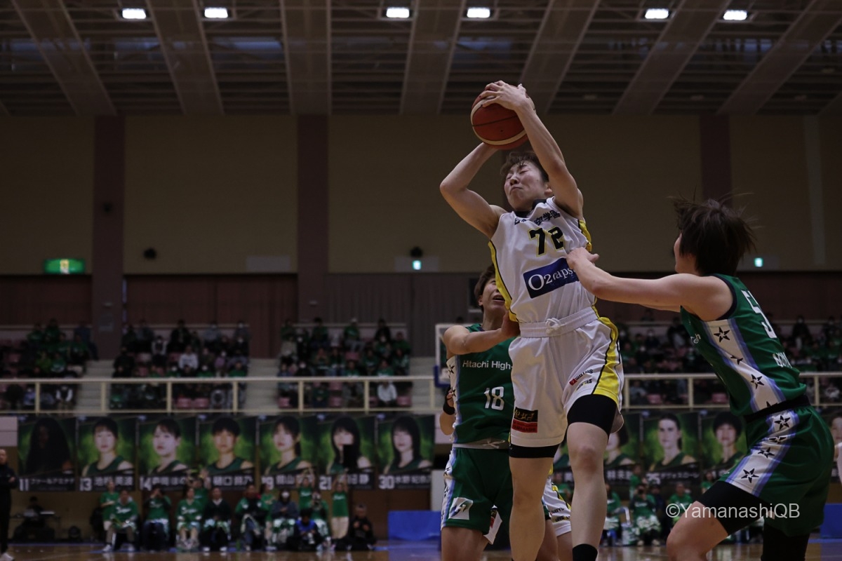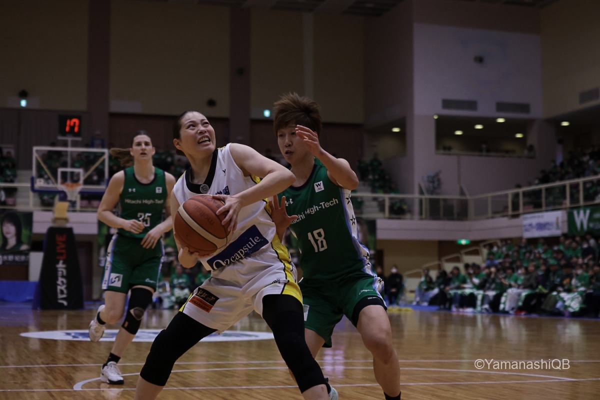 2点取れば3点を返される。波を引き寄せられない展開が続く。その焦りからかボールが手につかず、渡邊愛加や坂田のターンオーバーが続く。高田の3ポイントで流れは完全に日立ハイテクへ傾いた。