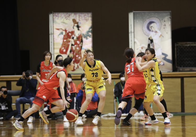 残り3分41秒で同点に追いつき逆転、一時は4点をリードしたが、その後追いつかれ5分間のオーバータイムに、オーバータイムではすでに5ファールのアランマーレに対して、新人の出原菜月が早々に2本のドライブをねじ込む。 その後、得点差は開き82-74で激闘の幕は下りた。