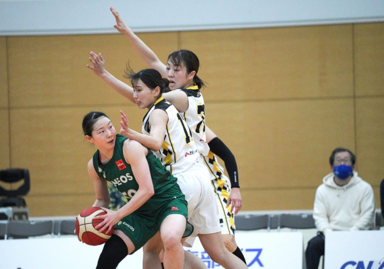 ENEOS戦ではポストにボールが入ったが、トヨタ自動車はチェックが厳しくて、ボールを持たせてもらえなかった。