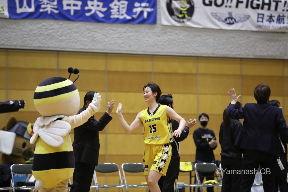 初めてのホームゲームは、黄色で埋まったアリーナの応援に勝利という結果では返せなかったが「山梨の方々に応援してもらえる選手・チームでありたい」と思った。