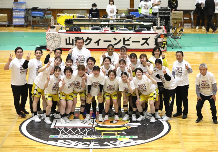 プレスディフェンスの効果は衰えず、残り4分22秒中山彩奈のスリーが決まり35-33と逆転。インサイドのケアには成功したクィーンビーズだが、ここからシャンソンの吉田 舞衣にスリーポイント3本を連続して沈められ、前半は40-46で終了。またもや追いかける展開に戻ったものの、クィーンビーズの今季の看板とも言える「人とボールが動き続ける」オフェンスと前から圧をかける「プレス」ディフェンスで対抗する姿は後半に大きな期待を抱かせる。