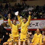 前日、都城市の早水公園体育文化センターでの観客数1,300人に続き、この日の会場宮崎県体育館には1,550人の観客が入場。山梨から遠く1,000km離れた宮崎で、昨日に続きホーム山梨で試合を行っている様な声援に背中を押されたクィーンビーズ。