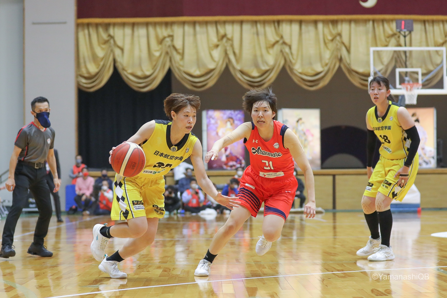 残り3分41秒で同点に追いつき逆転、一時は4点をリードしたが、その後追いつかれ5分間のオーバータイムに、オーバータイムではすでに5ファールのアランマーレに対して、新人の出原菜月が早々に2本のドライブをねじ込む。 その後、得点差は開き82-74で激闘の幕は下りた。